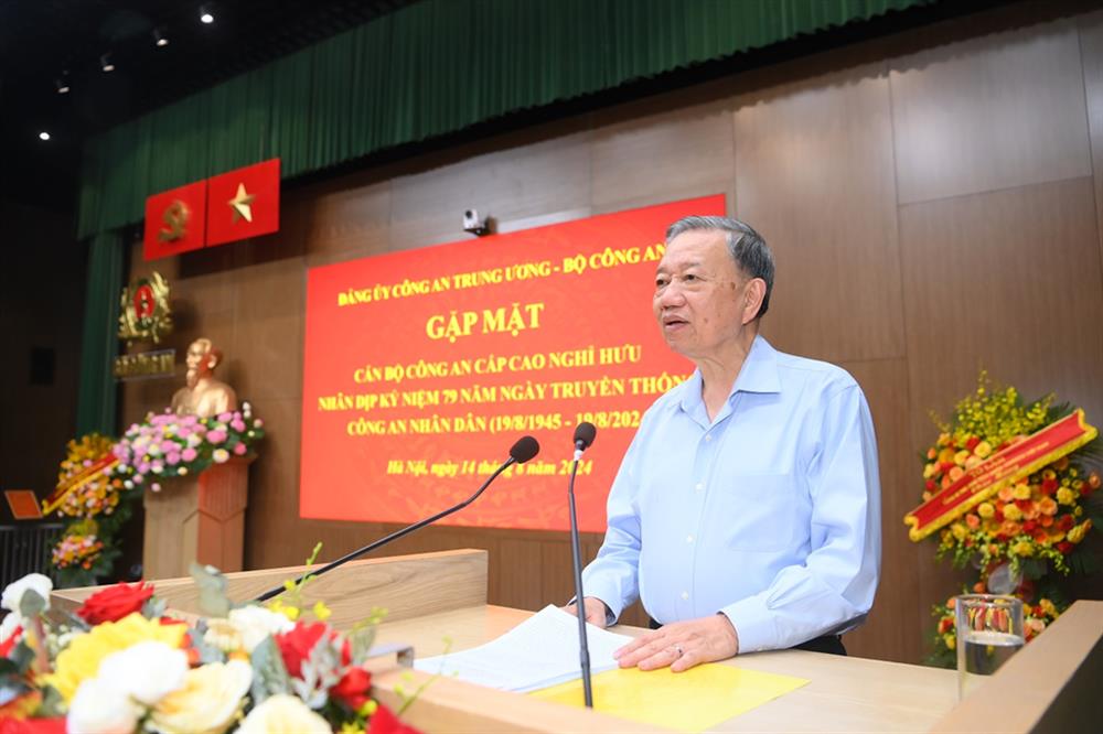 Chiều qua (14/8), Tổng Bí thư, Chủ tịch nước Tô Lâm đã dự, phát biểu tại buổi gặp mặt cán bộ cấp cao của lực lượng Công an nhân dân nghỉ hưu tại Hà Nội.