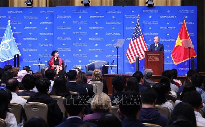 Tổng Bí thư, Chủ tịch nước Tô Lâm phát biểu chính sách tại Đại học Columbia. Ảnh: Lâm Khánh/TTXVN