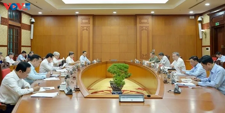 Tại phiên họp ngày 20/6/2025, sau khi nghe Báo cáo của Ban Tổ chức Trung ương về tình hình, tiến độ thực hiện các nghị quyết, kết luận của Trung ương, Bộ Chính trị về sắp xếp tổ chức bộ máy và đơn vị hành chính từ ngày 13/6 đến ngày 19/6/2025 (Báo cáo số 410-BC/BTCTW, ngày 19/6/2025) và Báo cáo giám sát tiến độ của Uỷ ban Kiểm tra Trung ương, Bộ Chính trị, Ban Bí thư kết luận như sau: