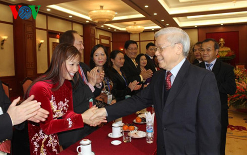 (VOV5) - Chiều ngày 30/1, Tổng Bí thư Ban Chấp hành Trung ương Đảng Cộng sản Việt Nam Nguyễn Phú Trọng tiếp đoàn đại biểu đại diện cho cộng đồng người Việt Nam ở nước ngoài về nước dự Chương trình Xuân Quê hương – 2016.