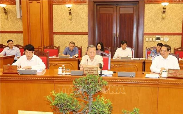 Tổng Bí thư, Chủ tịch nước Tô Lâm chủ trì họp Bộ Chính trị, Ban Bí thư. Ảnh: Trí Dũng/TTXVN |