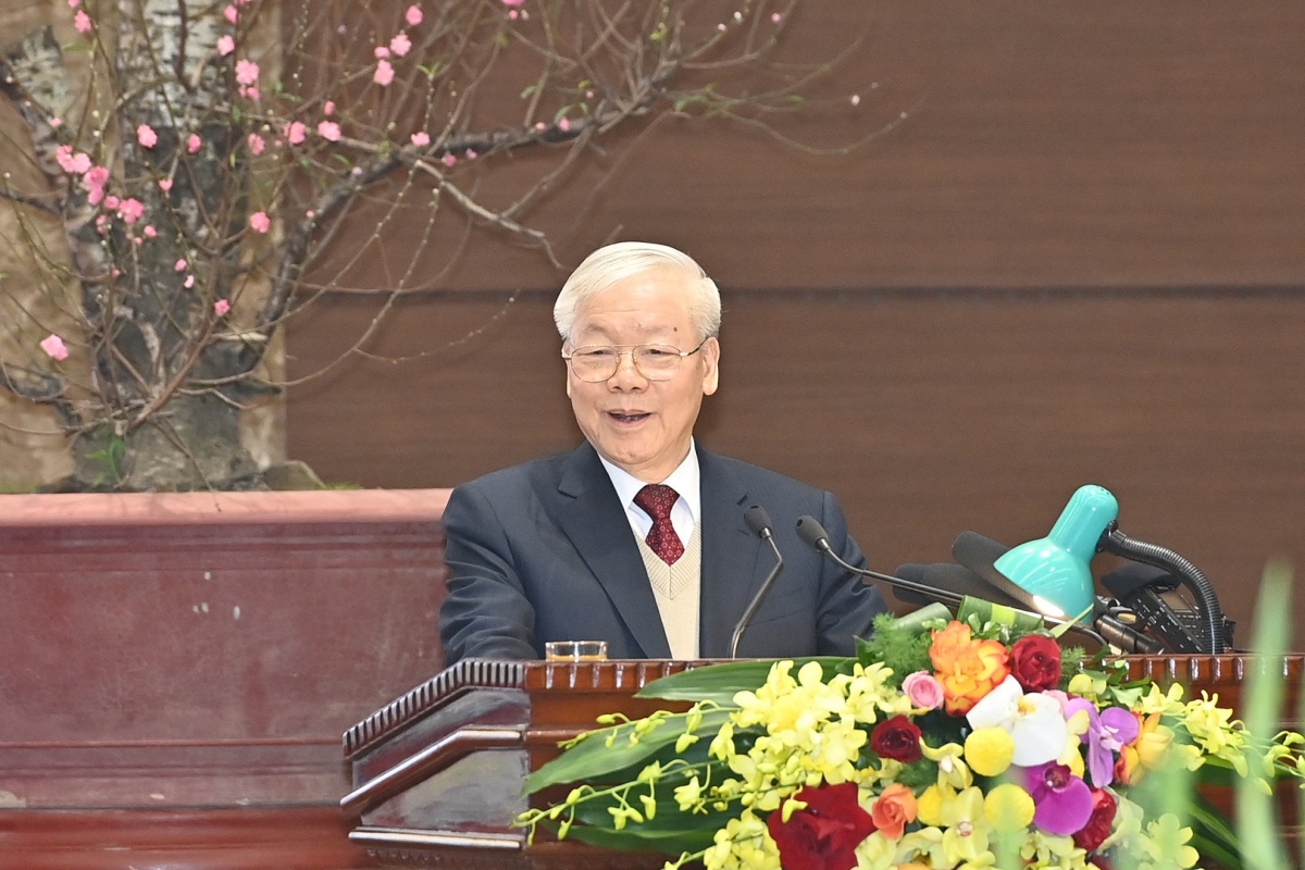Thay mặt lãnh đạo Đảng, Nhà nước và với tình cảm cá nhân, Tổng Bí thư Nguyễn Phú Trọng gửi tới các lãnh đạo, nguyên lãnh đạo các thời kỳ, các đồng chí lão thành cách mạng, Mẹ Việt Nam anh hùng, Anh hùng Lực lượng vũ trang; cùng toàn thể cán bộ, chiến sĩ, đồng bào Thủ đô lời thăm hỏi chân tình và những lời chúc mừng năm mới tốt đẹp nhất.