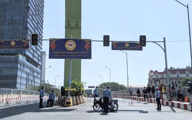 Lực lượng chức năng phong tỏa một khu vực tại Phnom Penh, sáng 20-2-2021. Ảnh:nhandan.com.vn |