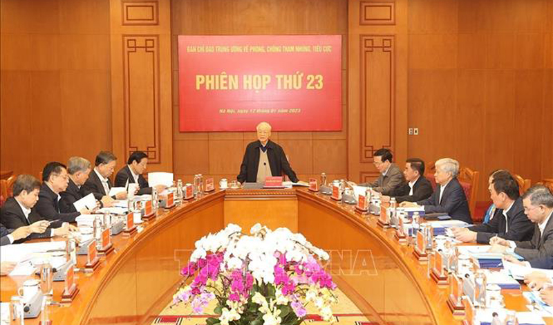 Ngày 12/1, tại Hà Nội, Ban Chỉ đạo Trung ương về phòng, chống tham nhũng, tiêu cực (Ban Chỉ đạo) họp Phiên thứ 23 để kiểm điểm, đánh giá kết quả hoạt động năm 2022, xác định chương trình công tác năm 2023. Tổng Bí thư Nguyễn Phú Trọng, Trưởng Ban Chỉ đạo, chủ trì Phiên họp.