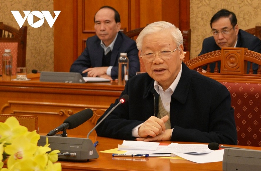 Tổng Bí thư Nguyễn Phú Trọng chủ trì cuộc họp. Ảnh: VOV |