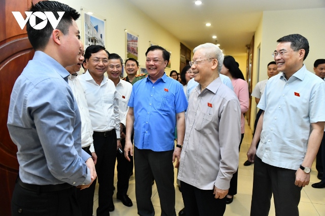 Tổng Bí thư Nguyễn Phú Trọng tiếp xúc cử tri các quận Đống Đa, Ba Đình, Hai Bà Trưng- Hà Nội. Ảnh: VOV |