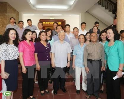 Tổng Bí thư Nguyễn Phú Trọng tiếp xúc cử tri quận Tây Hồ. (Ảnh: Trí Dũng/TTXVN) |