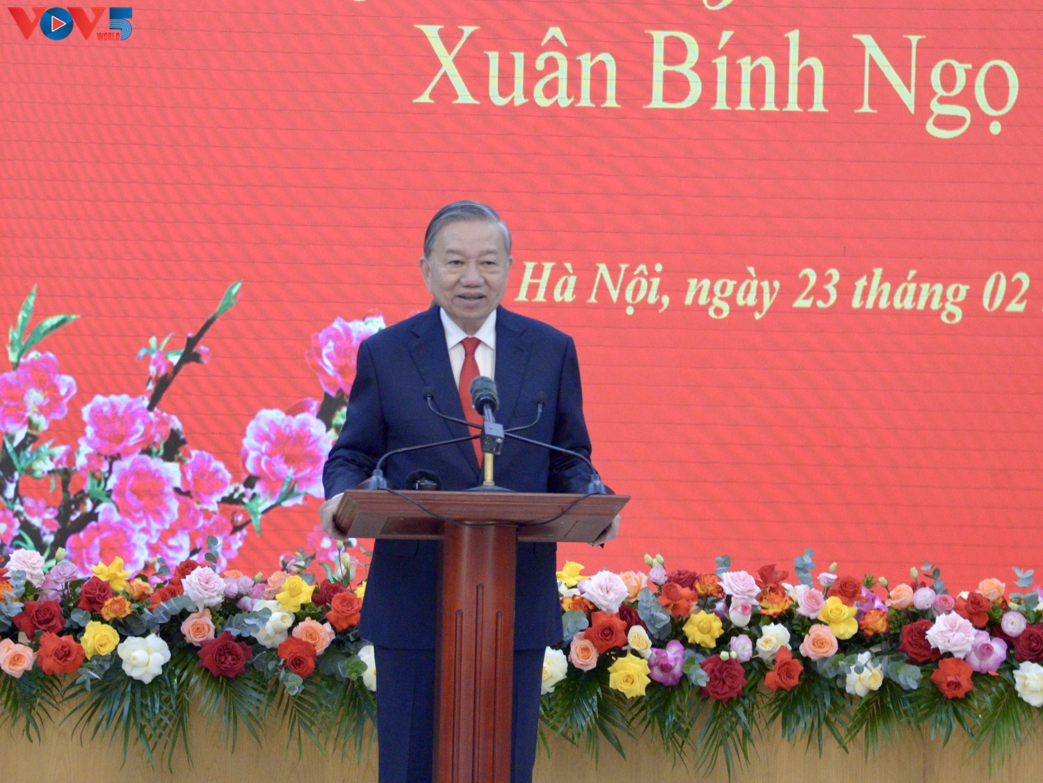 Nhân dịp đầu xuân năm mới, sáng 23/2, tại Hà Nội, Tổng Bí thư Ban chấp hành Trung ương Đảng Cộng sản Việt Nam Tô Lâm tới dự và chủ trì buổi gặp mặt, chúc tết cán bộ công chức, viên chức người lao động Văn phòng Trung ương Đảng.