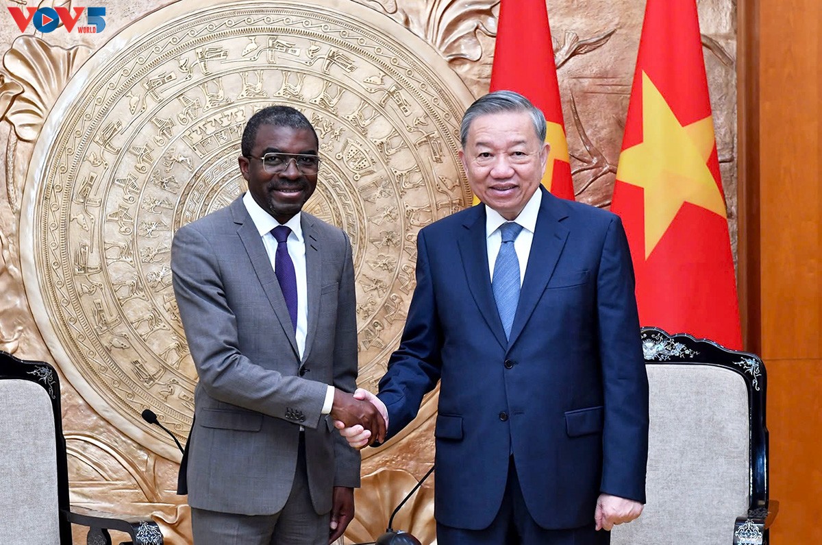Tổng Bí thư Tô Lâm tiếp Giám đốc Trung tâm Di sản Thế giới UNESCO Lazare Eloundou Assomo. Ảnh: Văn Hiếu/VOV |