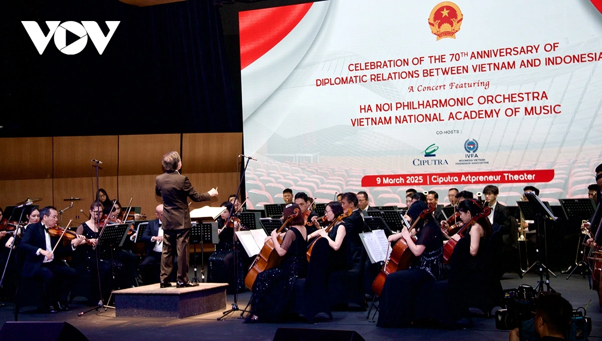 (VOV5) - Trong khuôn khổ chuyến thăm cấp Nhà nước Cộng hòa Indonesia, thăm chính thức Ban Thư ký ASEAN từ ngày 9 - 11/3/2025, tối 9/3, tại Nhà hát Ciputra, Thủ đô Jakarta, Tổng Bí thư Tô Lâm và Phu nhân Ngô Phương Ly đã dự Lễ hòa nhạc Kỷ niệm 70 năm thiết lập quan hệ ngoại giao Việt Nam – Indonesia.