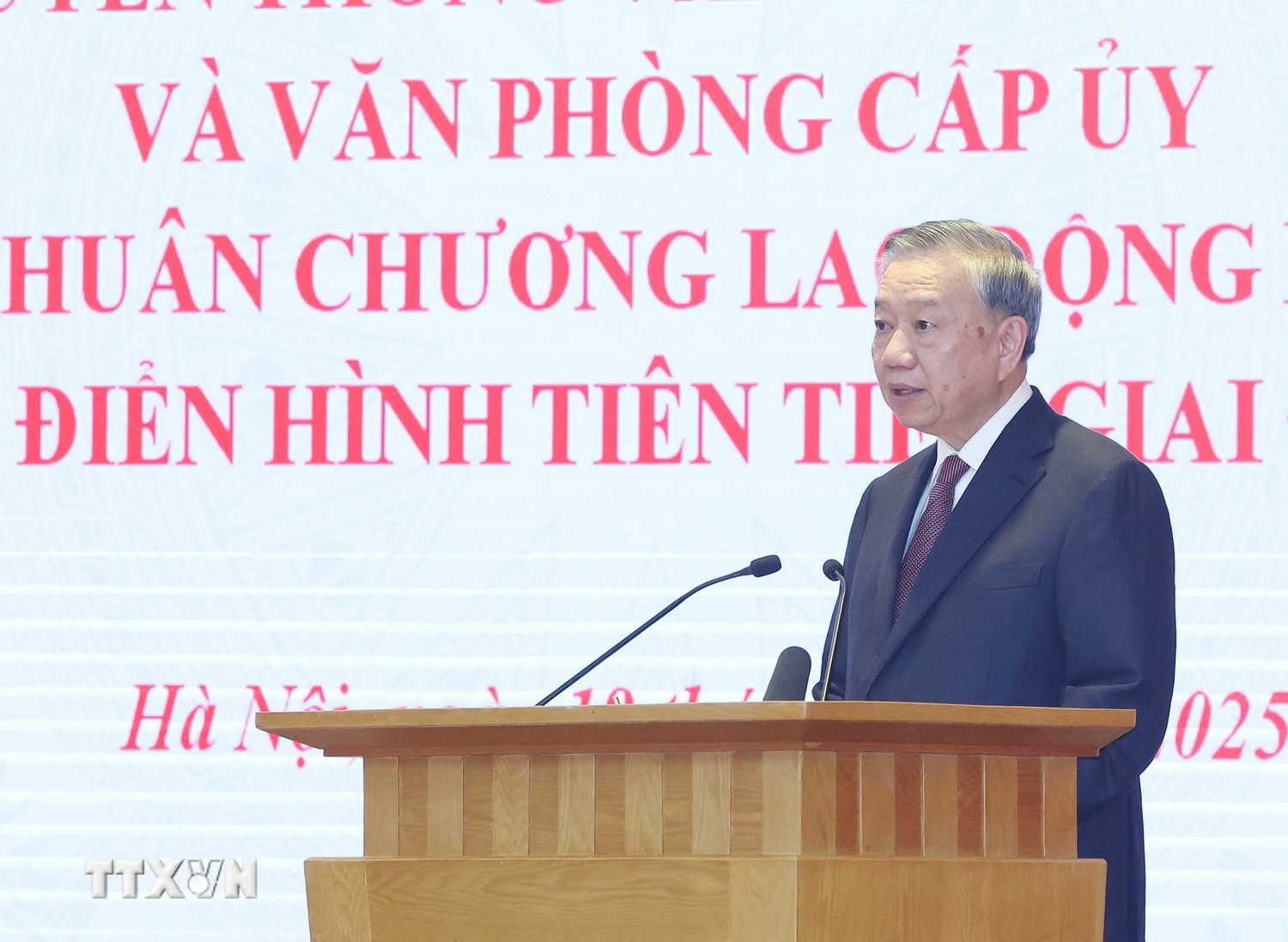 Tới dự và phát biểu chỉ đạo, Tổng Bí thư nêu rõ đất nước đã bước vào kỷ nguyên số, xã hội số, kinh tế số, điều này đòi hỏi hệ thống văn phòng cấp ủy cũng phải đổi mới mạnh mẽ. Tổng Bí thư nêu rõ 3 định hướng lớn mà Văn phòng Trung ương Đảng cần tập trung hành động trong thời gian tới, đó là: số hóa toàn diện văn bản hồ sơ công việc; chuẩn hóa quy trình, rút ngắn thời gian xử lý; phát triển năng lực số cho đội ngũ cán bộ văn phòng về kỹ năng dữ liệu, an toàn thông tin.