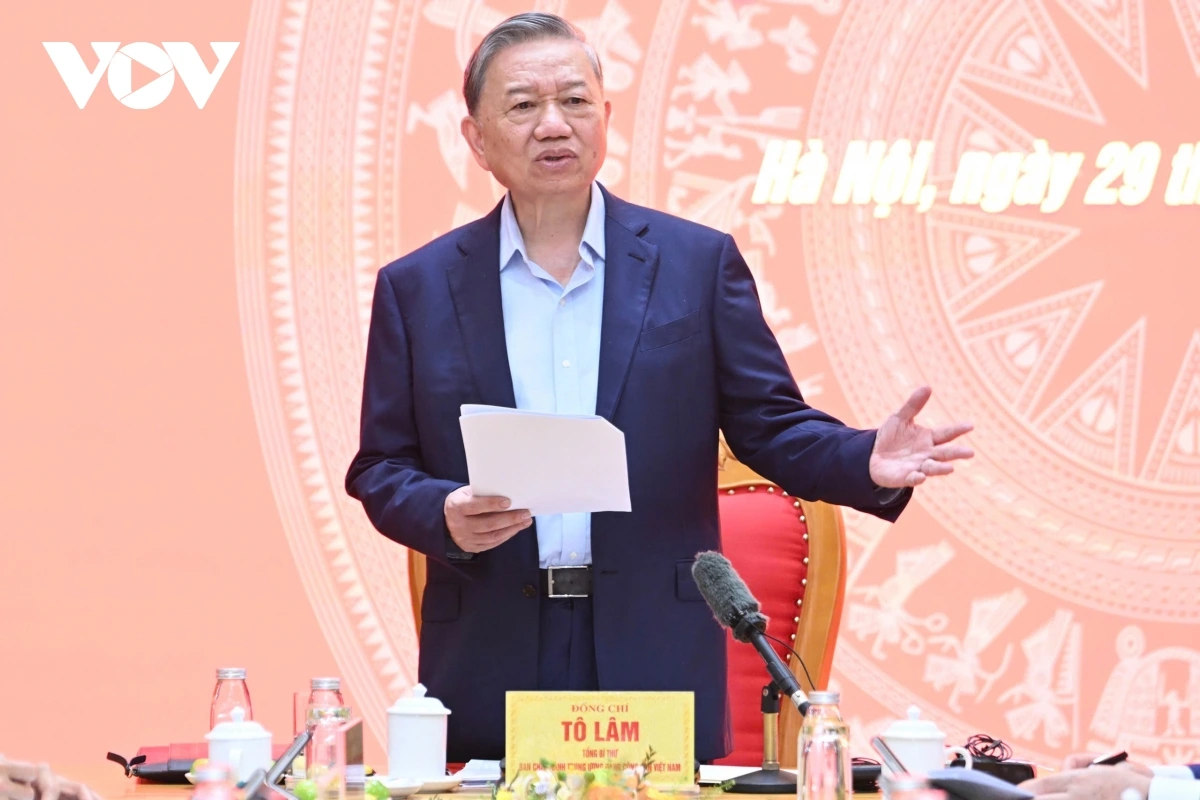 Tổng Bí thư Tô Lâm phát biểu tại buổi làm việc. Ảnh: Văn Hiếu/VOV |