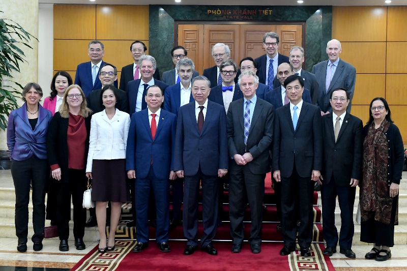 Tổng Bí thư Tô Lâm đề nghị các nhà khoa học, chuyên gia quốc tế tiếp tục hợp tác chặt chẽ và tích cực hỗ trợ Việt Nam trong các lĩnh vực: tư vấn chính sách phát triển khoa học công nghệ mới và lựa chọn hướng đầu tư phù hợp; hỗ trợ đào tạo nguồn nhân lực chất lượng cao phục vụ chiến lược phát triển công nghiệp bán dẫn và trí tuệ nhân tạo; thúc đẩy hình thành và phát triển các trung tâm đổi mới sáng tạo và tính toán năng suất cao và kết nối Việt Nam với các tập đoàn công nghệ hàng đầu và thị trường quốc tế.