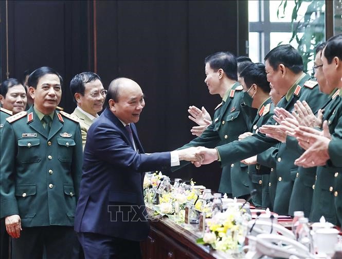 Chủ tịch nước Nguyễn Xuân Phúc và các đại biểu. Ảnh: Thống Nhất/ TTXVN |