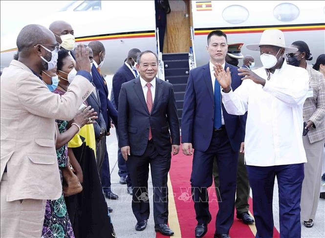 Lễ đón Tổng thống Cộng hòa Uganda Yoweri Kaguta Museveni tại Sân bay Quốc tế Nội Bài. Ảnh: TTXVN |