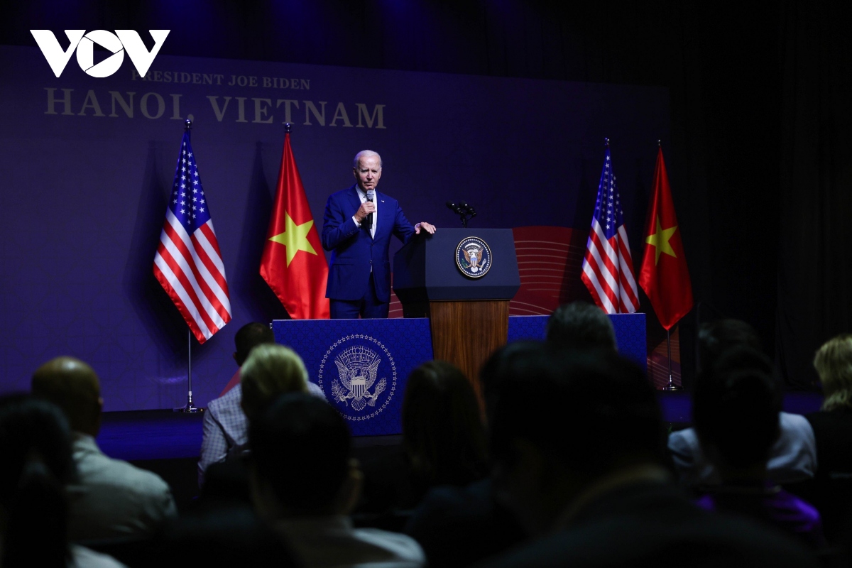 Tổng thống Biden đã cảm ơn sự đón tiếp của Việt Nam và nhấn mạnh chuyến thăm cấp Nhà nước của ông mang tính lịch sử - Ảnh: VOV |