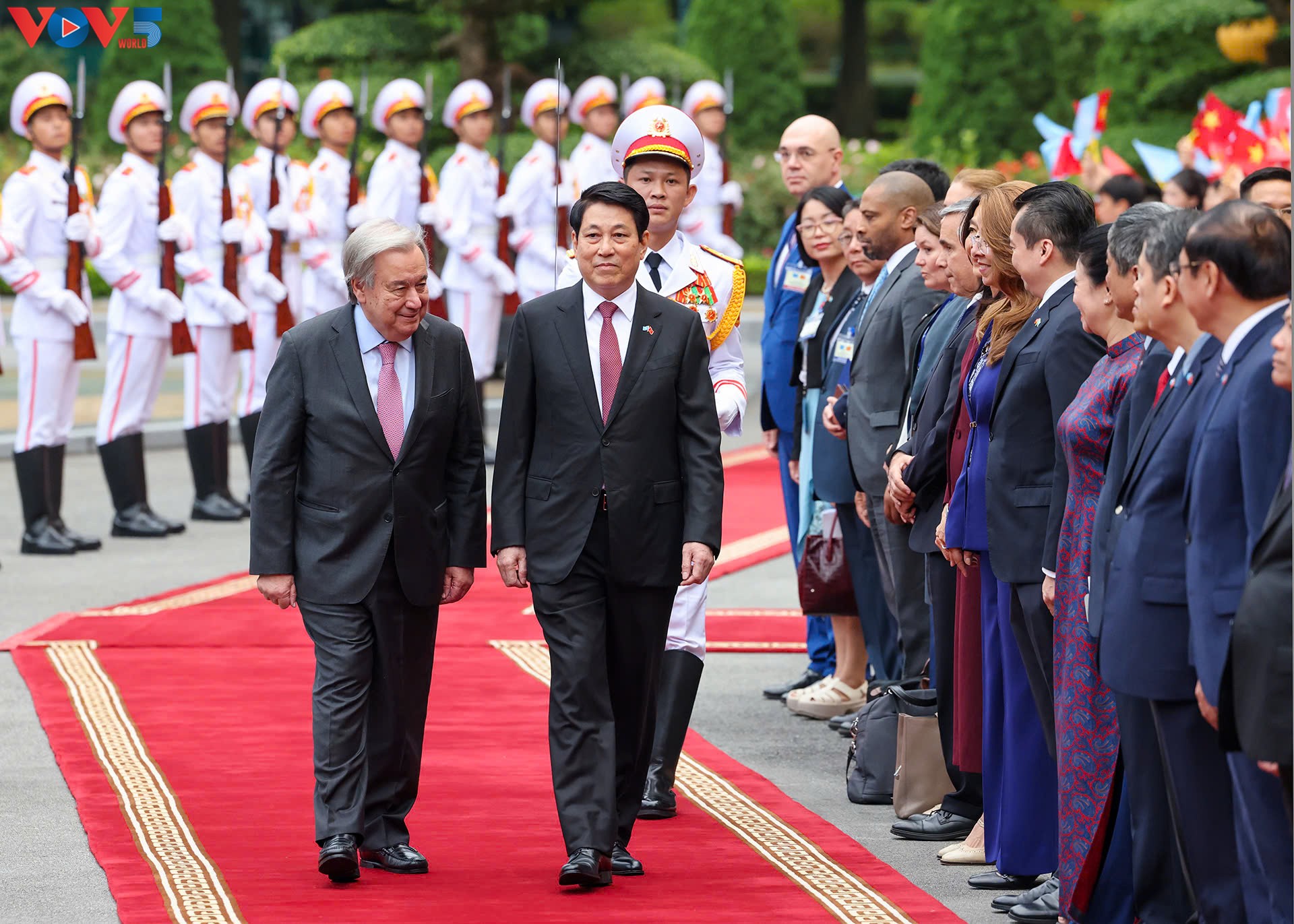 Trong chiều nay (24/10), tại Phủ Chủ tịch, Chủ tịch nước Lương Cường chủ trì lễ đón chính thức Tổng Thư ký Liên hợp quốc António Guterres.