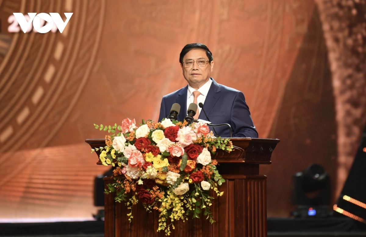 Thủ tướng Phạm Minh Chính phát biểu tại lễ trao giải. Ảnh: VOV |