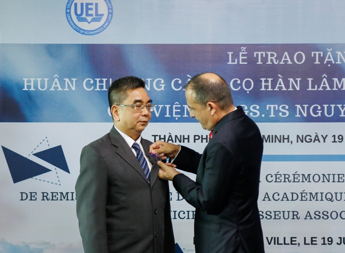 Ngày 19/07, Tổng Lãnh sự nước Cộng hòa Pháp tại Thành phố Hồ Chí Minh cùng Trường Đại học Kinh tế - Luật, Đại học Quốc gia Thành phố Hồ Chí Minh tổ chức lễ trao Huân chương Cành cọ Hàn lâm của Chính phủ Pháp cho Phó Giáo sư, Tiến sĩ Nguyễn Ngọc Điện, Phó Hiệu trưởng Trường Đại học Kinh tế - Luật, Đại học Quốc gia Thành phố Hồ Chí Minh.