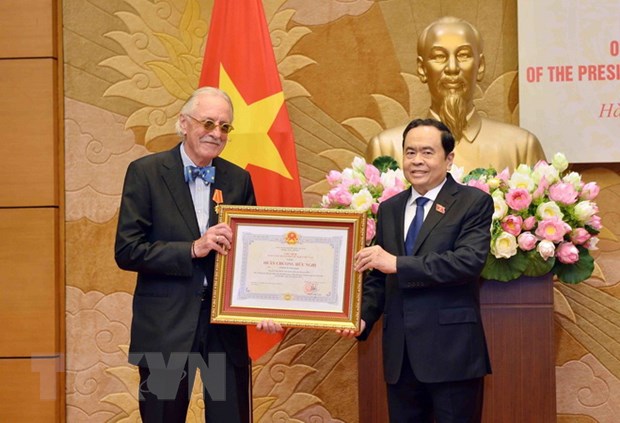 Phó Chủ tịch Thường trực Quốc hội Trần Thanh Mẫn thay mặt Lãnh đạo Đảng, Nhà nước trao tặng Huân chương Hữu nghị của Chủ tịch nước Cộng hòa xã hội Chủ nghĩa Việt Nam cho ông Anders Johnsson, nguyên Tổng Thư ký Liên minh Nghị viện thế giới (IPU). Ảnh: Phạm Kiên/TTXVN |