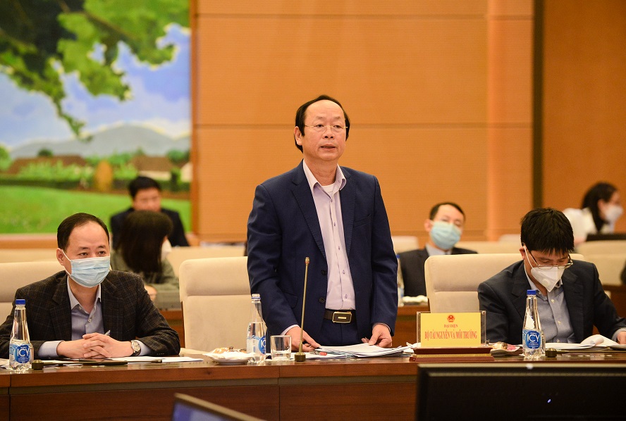 Thứ trưởng Bộ Tài nguyên và Môi trường Võ Tuấn Nhân báo cáo trước Đoàn giám sát - Ảnh: quochoi.vn |