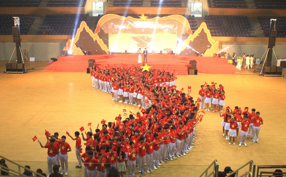1.300 đoàn viên, thanh niên, học sinh đã biểu diễn xếp Bản đồ Việt Nam tại Cung thể thao Tiên Sơn. Ảnh: VGP/Minh Trang |