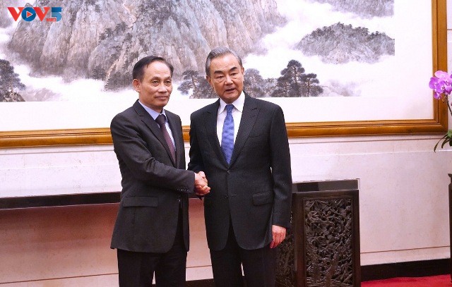 Trưởng ban Đối ngoại Trung ương, Lê Hoài Trung, với ông Vương Nghị, Ủy viên Bộ Chính trị, Chủ nhiệm Văn phòng Ủy ban Công tác đối ngoại Trung ương, Bộ trưởng Bộ Ngoại giao Trung Quốc. Ảnh: PV/VOV-Bắc Kinh |