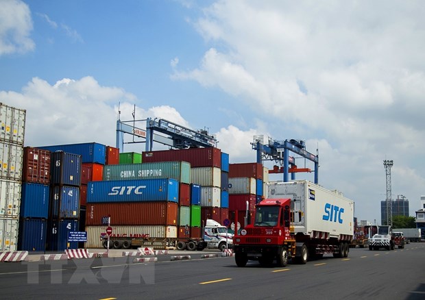 Xếp dỡ hàng hóa container tại Tân cảng Sài Gòn. Ảnh: Hồng Đạt/TTXVN |