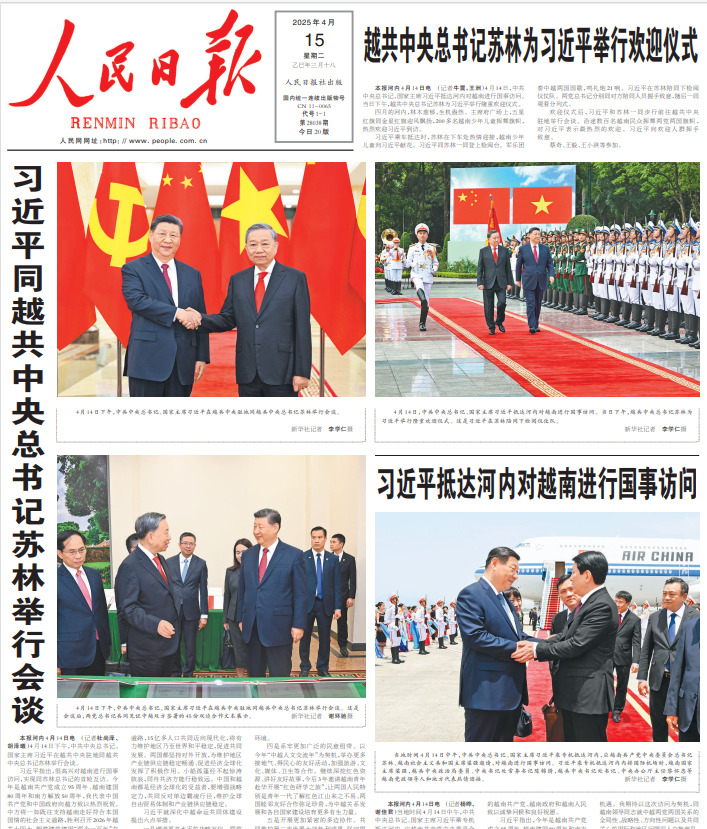 Nhân Dân nhật báo, Cơ quan ngôn luận của Ban chấp hành Trung ương Đảng Cộng sản Trung Quốc, dành toàn bộ trang nhất, trang 2, một phần trang 3 và toàn bộ trang 5 đưa tin về hoạt động của Tổng Bí thư, Chủ tịch Tập Cận Bình và Đoàn đại biểu cấp cao Trung Quốc tại Việt Nam, các hoạt động giao lưu hữu nghị giữa hai nước và quan hệ Việt – Trung.