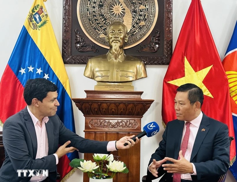Về quan hệ Việt Nam - Venezuela, Đại sứ Vũ Trung Mỹ khẳng định mối quan hệ hữu nghị truyền thống và Đối tác toàn diện giữa hai nước tiếp tục được tăng cường và đẩy mạnh trên mọi lĩnh vực suốt thời gian qua, đặc biệt trong bối cảnh năm nay là dịp hai nước kỷ niệm 35 năm thiết lập quan hệ ngoại giao (12/1989 - 12/2024).