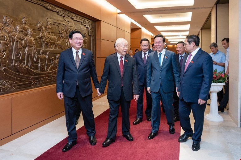 Tổng Bí thư Nguyễn Phú Trọng, Chủ tịch nước Võ Văn Thưởng, Thủ tướng Phạm Minh Chính, Chủ tịch Quốc hội Vương Đình Huệ và các đại biểu dự Kỳ họp thứ 5 Quốc hội khóa XV |