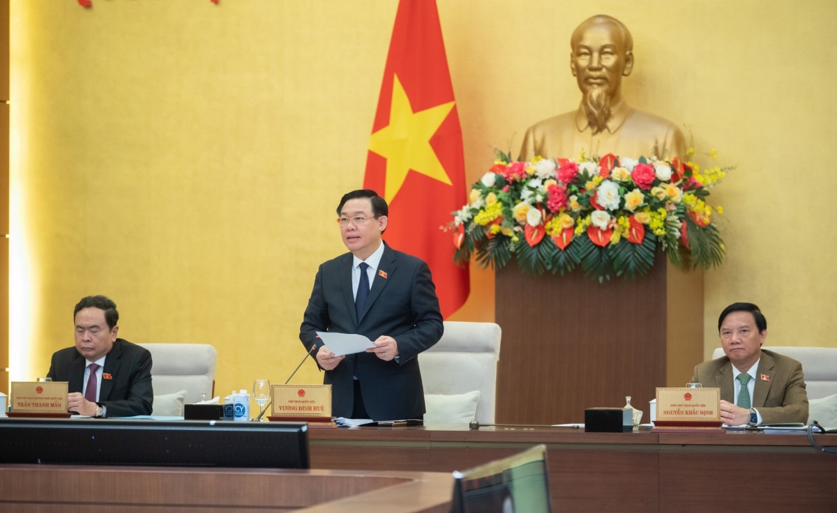 Chủ tịch Quốc hội Vương Đình Huệ phát biểu tại Phiên họp 23 của Ủy ban Thường vụ Quốc hội. Ảnh: VOV |