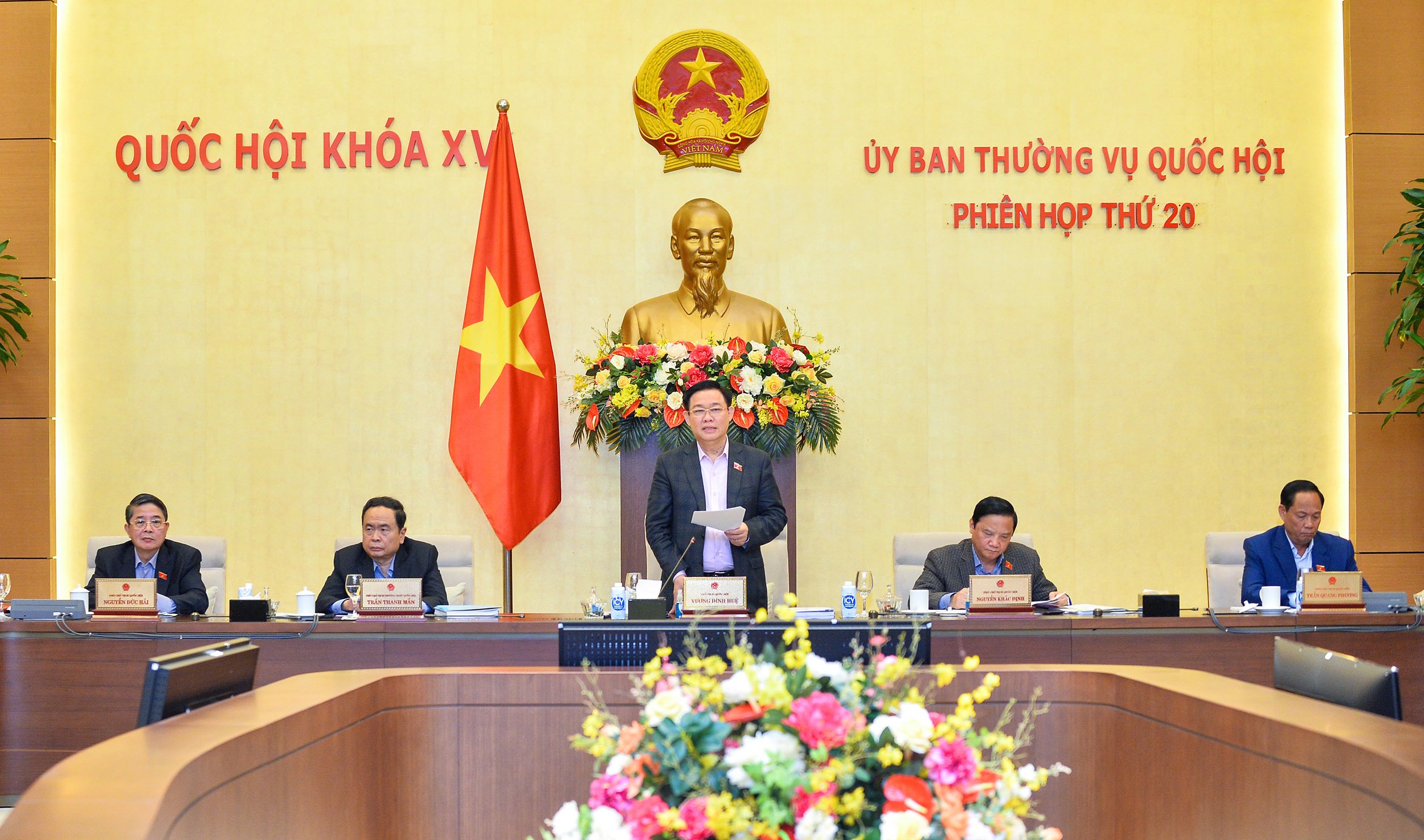 Chủ tịch Quốc hội Vương Đình Huệ phát biểu tại Phiên họp thứ 20 của uỷ ban Thường vụ Quốc hội, ngày 14/02/2023. Ảnh: quochoi.vn |