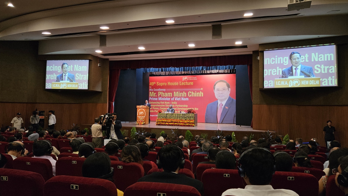Trong khuôn khổ chuyến thăm cấp Nhà nước Ấn Độ, chiều tối qua (01/08), Thủ tướng Phạm Minh Chính có bài phát biểu “Tăng cường quan hệ Đối tác chiến lược toàn diện Việt Nam - Ấn Độ vì hòa bình, hợp tác và phát triển ở khu vực Ấn Độ Dương - châu Á - Thái Bình Dương và toàn cầu”, tại Hội đồng các Vấn đề Thế giới của Ấn Độ (ICWA).