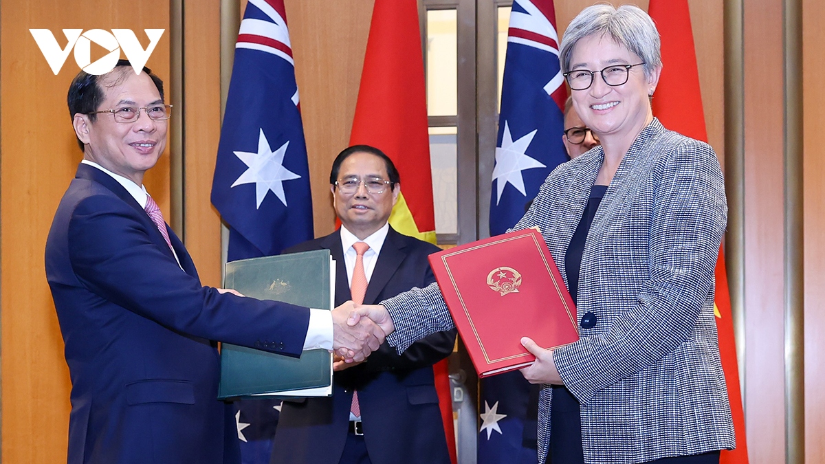 Trước đó, Thủ tướng Australia Anthony Albanese và Thủ tướng Phạm Minh Chính chứng kiến lễ ký kết và trao 11 văn kiện hợp tác giữa hai nước trong các lĩnh vực: giáo dục, đào tạo; năng lượng và khoáng sản; nông, lâm, ngư nghiệp; khoa học, công nghệ và đổi mới sáng tạo; lao động, việc làm; thương mại, đầu tư, tài chính, ngân hàng; quốc phòng và gìn giữ hòa bình; tư pháp.