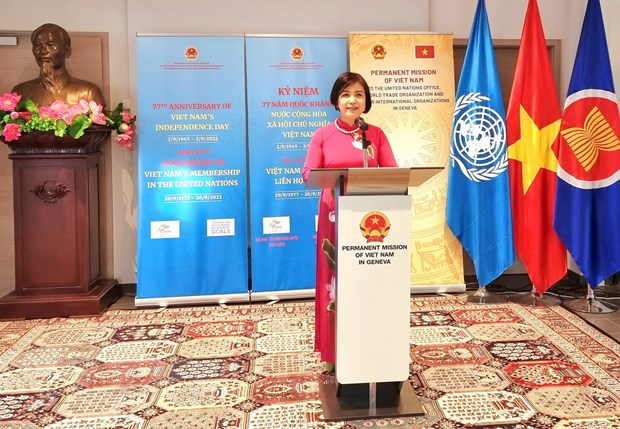 Ngày 14/9, Phái đoàn đại diện thường trực Việt Nam bên cạnh Liên hợp quốc (LHQ), Tổ chức Thương mại thế giới (WTO) và các tổ chức quốc tế khác tại Geneva (Thụy Sĩ) đã long trọng tổ chức Lễ kỷ niệm 77 năm Quốc khánh Việt Nam và 45 năm Việt Nam tham gia LHQ.