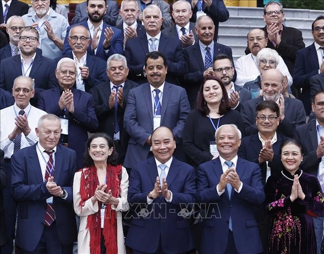 Phát biểu tại đây, Chủ tịch nước Nguyễn Xuân Phúc nhấn mạnh Việt Nam chủ trương là bạn, là đối tác tin cậy và là thành viên có trách nhiệm trong cộng đồng quốc tế, hợp tác bình đẳng, cùng có lợi. Đồng thời, Việt Nam luôn kiên định đoàn kết, ủng hộ nhân dân các nước đấu tranh vì hoà bình, độc lập dân tộc, dân chủ và tiến bộ xã hội, vì một thế giới công bằng và phát triển bền vững và hòa bình: "Việt Nam sẽ kiên định mục tiêu độc lập dân tộc gắn liền với chủ nghĩa xã hội, kiên trì đường lối đối ngoại độc lập, tự chủ, hòa bình, hữu nghị, hợp tác và phát triển, đa dạng hóa, đa phương hóa quan hệ đối ngoại, chủ động và tích cực hội nhập quốc tế; bảo đảm cao nhất lợi ích quốc gia-dân tộc trên cơ sở các nguyên tắc cơ bản của Hiến chương Liên hợp quốc và luật pháp quốc tế. Chúng tôi mong Hội đồng Hòa bình thế giới, các tổ chức dân chủ quốc tế, các lực lượng hoà bình, tiến bộ thế giới tiếp tục đồng hành, đoàn kết và ủng hộ nhân dân Việt Nam trên chặng đường mới. Việt Nam sẽ tiếp tục đóng góp tích cực vào các phong trào của Hội đồng cũng như các phong trào nhân dân tiến bộ trên thế giới vì hòa bình, độc lập dân tộc, dân chủ và tiến bộ xã hội".