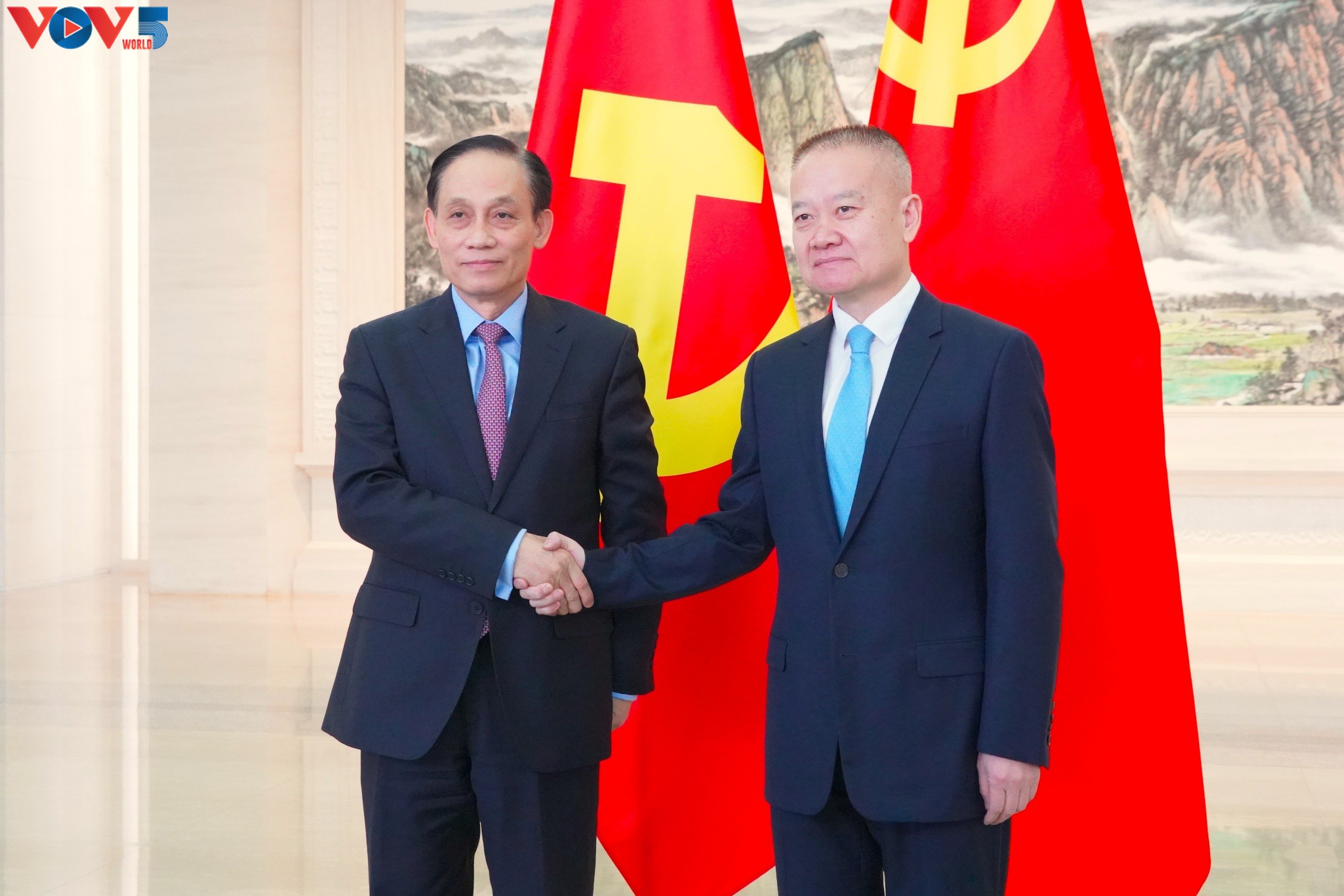 Bộ trưởng Ngoại giao Lê Hoài Trung và Trưởng ban Liên lạc Đối ngoại Trung ương Trung Quốc Lưu Hải Tinh. Ảnh: VOV |