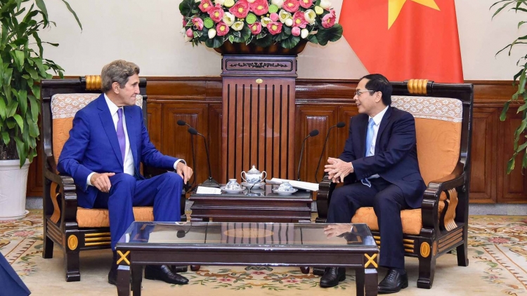 Ông John Kerry khẳng định Hoa Kỳ coi trọng quan hệ Đối tác toàn diện với Việt Nam và Hoa kỳ sẽ ủng hồ Việt Nam trong việc nỗ lực thích ứng, chống biến đổi khí hậu, phát triển bền vững.