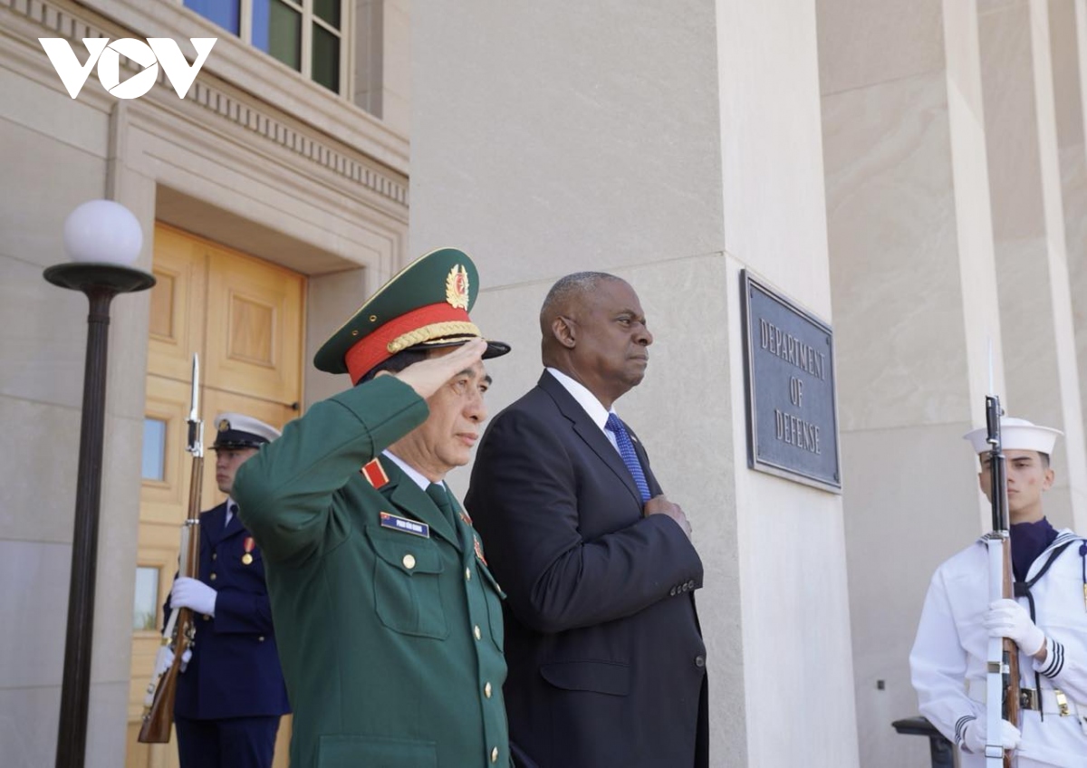 Lễ đón chính thức Bộ trưởng Bộ Quốc phòng Phan Văn Giang và đoàn đại biểu cấp cao Bộ Quốc phòng Việt Nam thăm chính thức Hoa Kỳ diễn ra hôm qua (09/09) tại trụ sở Bộ Quốc phòng Hoa Kỳ ở thủ đô Washington. Sau lễ đón, Bộ trưởng Phan Văn Giang có cuộc hội đàm với Bộ trưởng Quốc phòng Hoa Kỳ, Lloyd Austin.