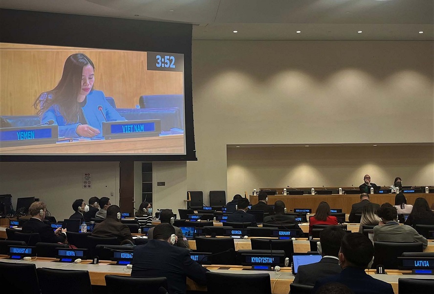 Phát biểu tại phiên họp, Tham tán Công sứ Lê Thị Minh Thoa, Phó Trưởng Phái đoàn thường trực Việt Nam tại LHQ, nhấn mạnh trước thềm các hội nghị liên quan sắp tới của LHQ, các nước cần đảm bảo có những tiến triển thực chất trong thực hiện các cam kết quốc tế; lấy con người làm trung tâm để ứng phó với các thách thức về khí hậu và môi trường…