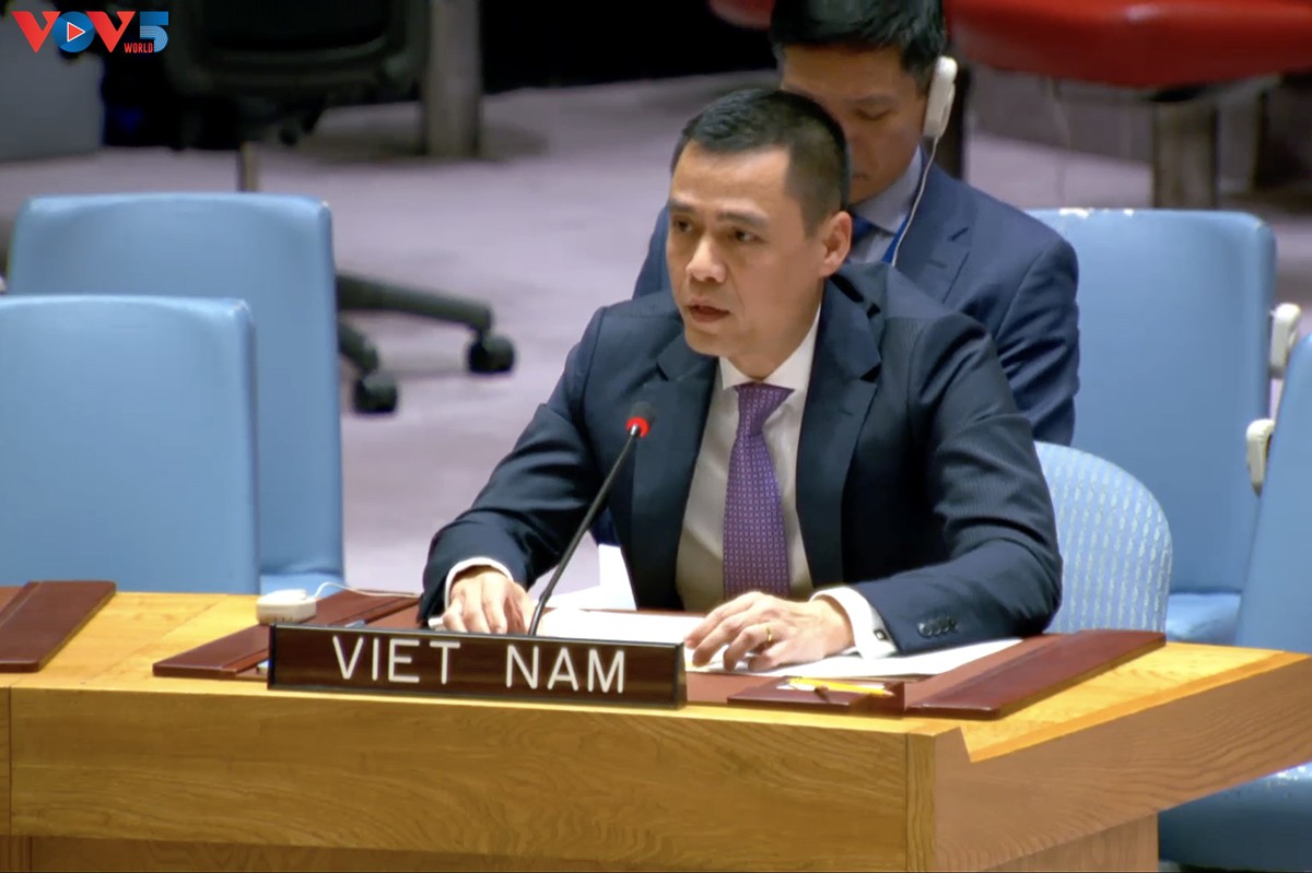 Phát biểu tại phiên thảo luận, Đại sứ Đặng Hoàng Giang, Trưởng Phái đoàn Thường trực Việt Nam tại Liên hợp quốc, nhấn mạnh hòa bình là điều kiện tiên quyết cho phát triển.