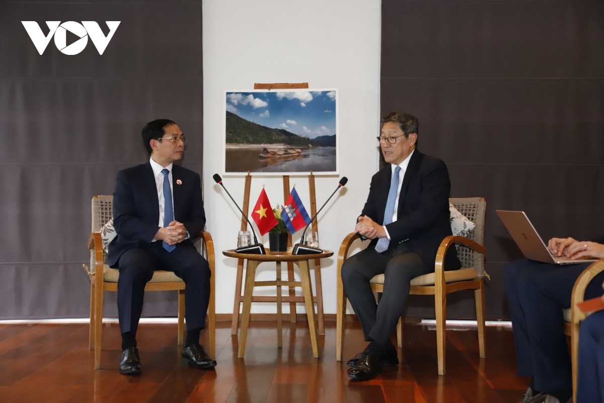 Cùng ngày, Bộ trưởng Ngoại giao Việt Nam Bùi Thanh Sơn cũng gặp Phó Thủ tướng, Bộ trưởng Bộ Ngoại giao và Hợp tác quốc tế Vương quốc Campuchia Sok Chenda Sophea.