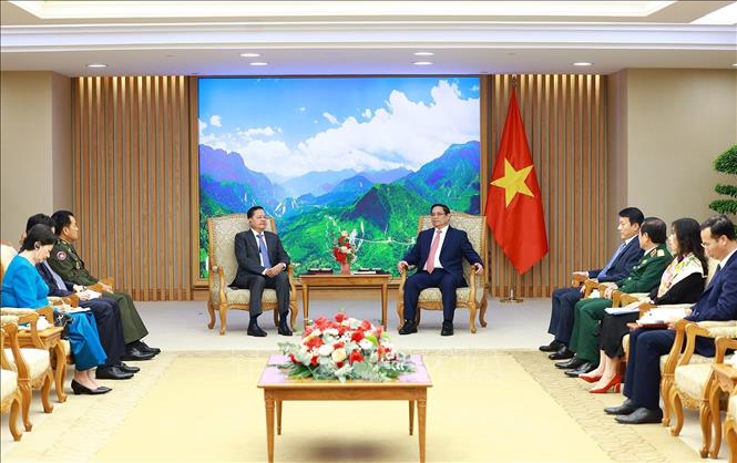 Thủ tướng Phạm Minh Chính tiếp Phó Thủ tướng Campuchia Neth Savoeun - Ảnh: Dương Giang/TTXVN |