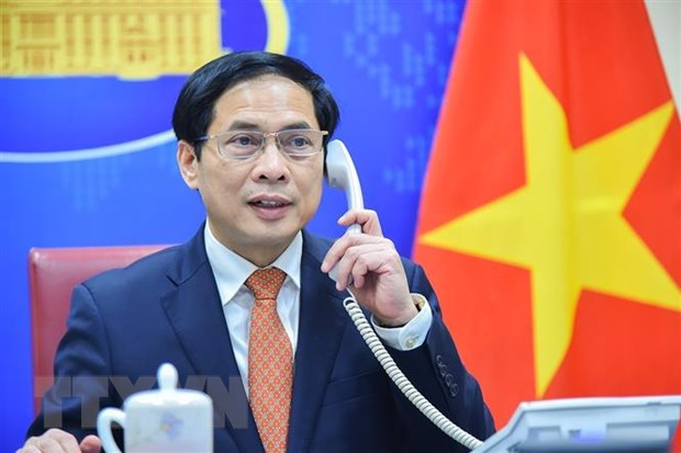 Bộ trưởng Bộ Ngoại giao Bùi Thanh Sơn điện đàm với Bộ trưởng Ngoại giao Liên bang Nga Sergey Lavrov. Ảnh: TTXVN |