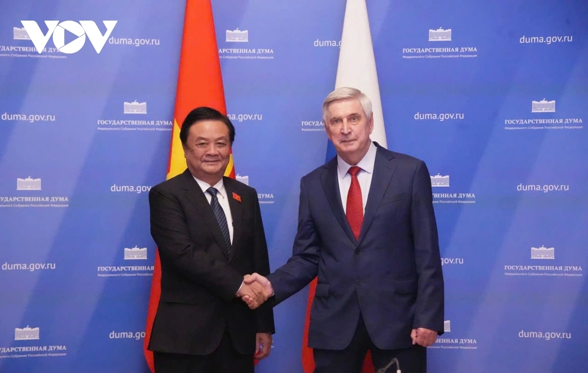 Phó Chủ tịch Quốc hội Lê Minh Hoan và Phó Chủ tịch thứ nhất Duma Quốc gia Quốc hội Nga Melnhikov. Ảnh: VOV |