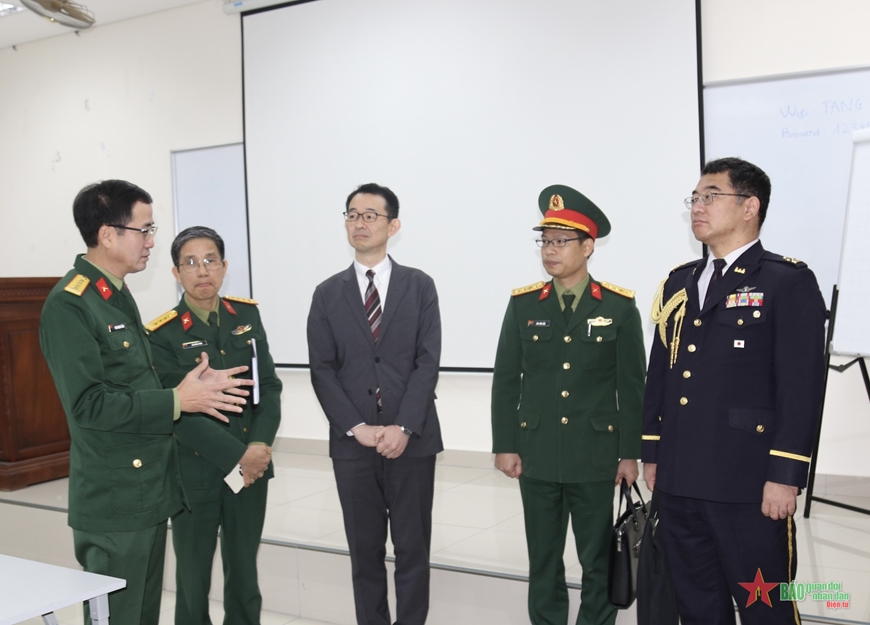 Thứ trưởng Serizawa Kiyoshi tham quan cơ sở vật chất của Cục Gìn giữ hòa bình Việt Nam. Ảnh: qdnd.vn |