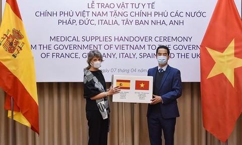 Thừa ủy quyền của Thủ tướng Chính phủ, chiều ngày 7/4, tại trụ sở Bộ Ngoại giao, Thứ trưởng Ngoại giao Tô Anh Dũng trao tượng trưng số hàng hỗ trợ phòng chống dịch Covid-19 của Chính phủ và nhân dân Việt Nam gửi tặng Chính phủ và nhân dân các nước Pháp, Đức, Italia, Tây Ban Nha và Anh, bị ảnh hưởng nặng nề của dịch bệnh Covid 19. Số hàng trao tặng bao gồm 550.000 khẩu trang vải kháng khuẩn chống giọt bắn, do Việt Nam sản xuất.