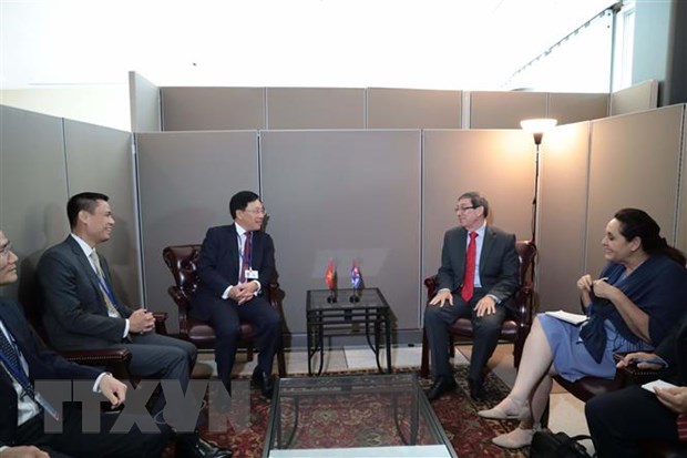 Phó Thủ tướng Thường trực Chính phủ Phạm Bình Minh gặp Bộ trưởng Ngoại giao Cuba Bruno Rodríguez. Ảnh: TTXVN phát |