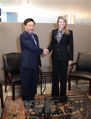 Phó Thủ tướng Thường trực Chính phủ Phạm Bình Minh và Bộ trưởng Ngoại giao Canada Melanie Joly. Ảnh: TTXVN phát |
